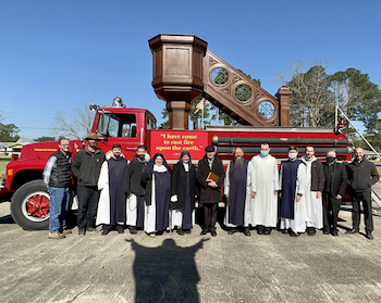Fête-Dieu du Teche has added a new element to this year’s Bible Marathon — the “Friar Truck.” The retrofitted antique fire truck has been transformed into a mobile church with a built-in pulpit.