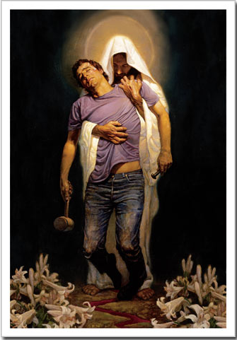 8. Change – the wounded hand of Jesus over the man’s heart upholds him and reveals God’s desire to change all hearts by the power of His love.