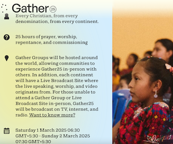 Gather25 invites Christians from all over the world to save the date, March 1st, 2025, and invite others to join as well.