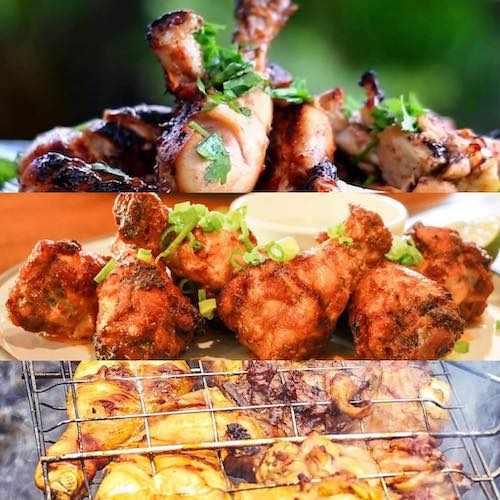Marinate 4 large quarters of chicken in – 1 cup yoghurt, 1 tsp crushed black pepper, 1 tbs lemon juice and 1 tbs ginger garlic paste for an hour.