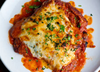 Australia and Italy both claim it as their own. Chicken Parmigiana, or Chicken Parmesan (Italian pollo alla parmigiana) is breaded chicken breast covered in tomato sauce and mozzarella, parmesan, or provolone cheese.