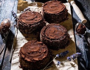 Bake for half an hour in mini cake molds. When the cakes cool, sprinkle cocoa powder on top.