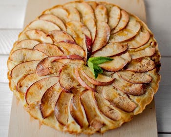 Place the pie dough in your pie dish carefully without stretching it. Fill with apple slices. Gently pour in the spicy sauce.
