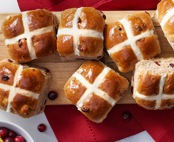 A classic Easter recipe – Hot Cross Buns are topped with a cross which symbolises Christ’s crucifixion.