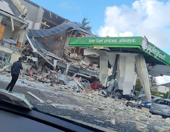 Photographs from the scene showed a residential unit above the service station’s store with walls blown out and a partially collapsed roof, and debris scattered across the forecourt where several cars were parked.