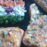 Whip 4 eggs together with 250 gm sugar until foamy. Add the grated zest of 1 lemon, 125 gm flour, 125 gm corn flour and 2 tsp baking powder and mix well.