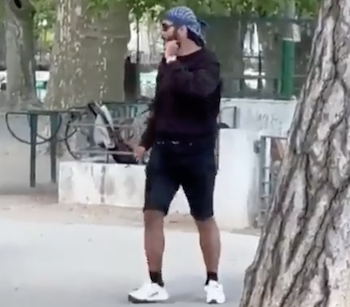Videos posted to social media show a man with a beard, wearing a headscarf, dark sunglasses and shorts, running in the park and chasing people with a knife in his hand, particularly targeting children.