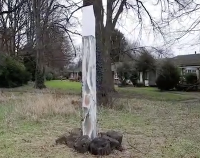 “I don’t know where the power is coming from for the lights,” Wells added. “There are some sliced tree trunks around the base but I’ve got a bad back so I’m not going to be lifting those to find out.”