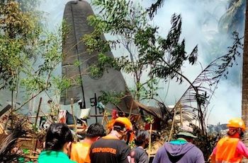 The Lockheed C-130 transport aircraft was carrying 96 people, mostly troops, when it overshot a runway at Jolo airport in Sulu province on Sunday. Many of those on board had only recently completed basic military training.