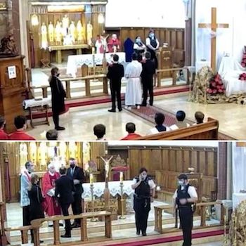 YouTube footage showed Metropolitan police officers addressing worshippers at the Christ the King Polish Catholic church in Balham, south London, during the Good Friday service.