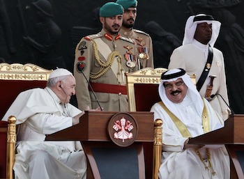On Friday afternoon, Francis addressed Bahrain’s Muslim Council of Elders in the courtyard of the royal mosque, where he praised those Muslim leaders who “see in extremism a danger that corrodes genuine religion” and called for more dialogue between Islam and other religions.