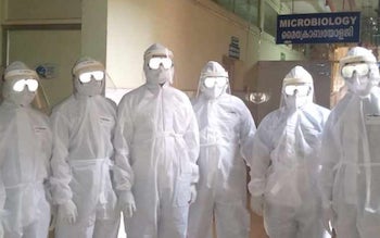 The team dons PPE kits and devotes whole days to getting food and medications across to the patients.