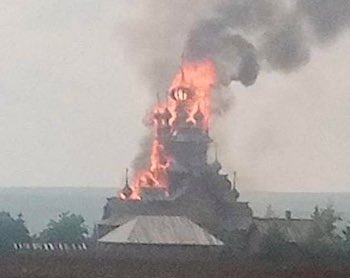 TGorski also tweeted a second image of the monastery on fire from hromadske.