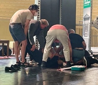 A small group of people quickly surrounded Mr Rushdie, holding up his legs, presumably to send more blood to his chest, AP reported. Hundreds of people in the audience gasped at the sight of the attack and were then evacuated.