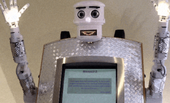 The Protestant church in Hesse and Nassau built a robot priest to give blessings as part of a celebration of the 500th anniversary of the Reformation. The robot, named “BlessU-2,” has a touchscreen, glowing hands, and can forgive your sins in five different languages.