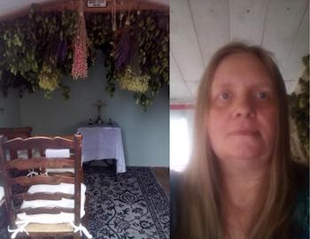 She has decorated the church with dried flowers and hop vines which she purchased online and hung across the ceiling, complete with an altar at the back in which she placed a crucifix.